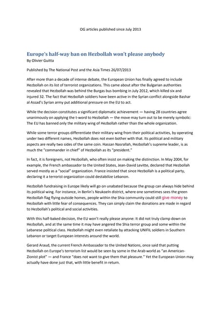 • Neighboring countries destabilized: especially Lebanon,