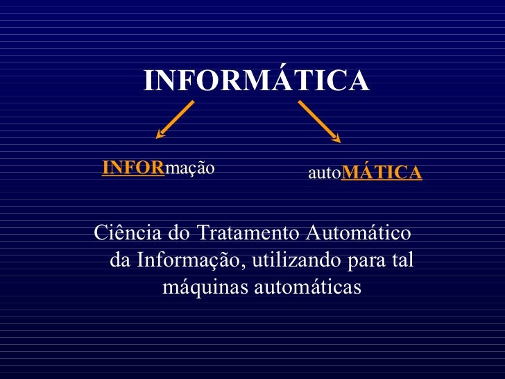 8. 8. INFORMÁTICA Ciência do Tratamento Automático da Informação, utilizando para tal máquinas automáticas INFOR mação auto MÁTICA