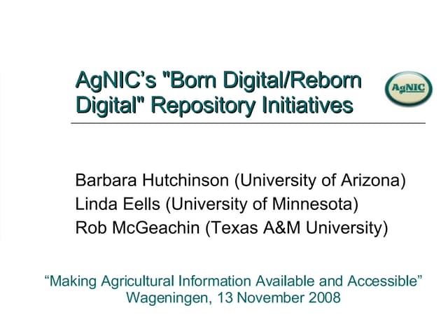 ● multimedia content – in which access is not only through the work of digital scholarship but also through a digital repository where the multimedia is preserved