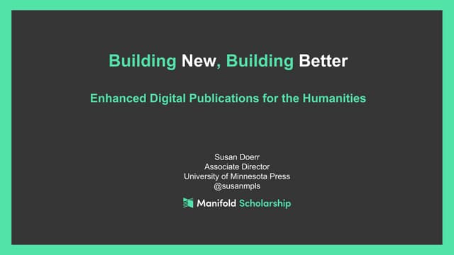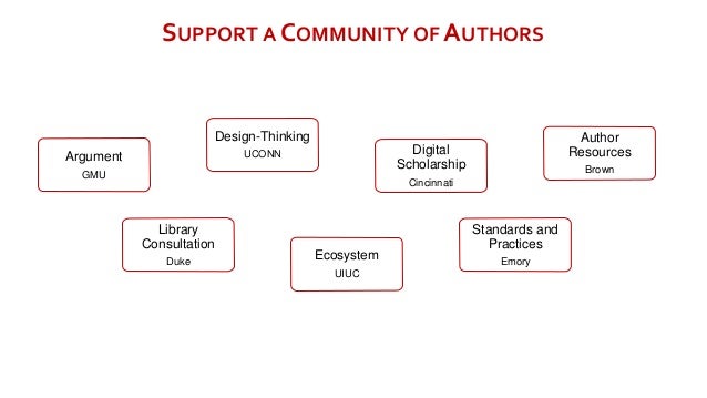 ● [click] Started to foster a community of authors committed to publishing digital scholarship but struggling with how to do so in the absence of press and even university infrastructure to support it. Developing this community is as important as developing the technology that will enable these authors’ works to be published beyond the confines of a print monograph.