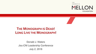 THE MONOGRAPH IS DEAD!