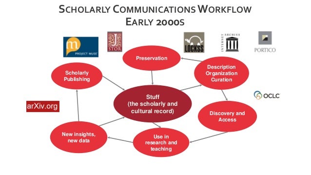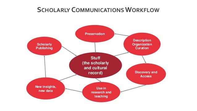 Here is a high level view of the general interrelated functions of the scholarly communications process.