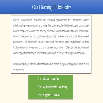 • Linking people to performance and customers Strategic planning and performance measurement Streamlining existing processes and systems