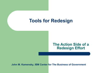 1. 1. Tools for Redesign The Action Side of a Redesign Effort John M. Kamensky, IBM Center for The Business of Government