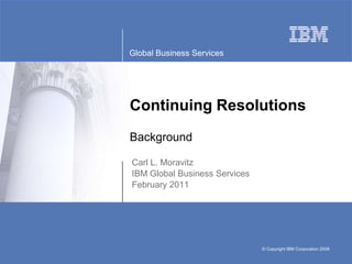1. 1. Global Business Services Continuing Resolutions Background Carl L. Moravitz IBM Global Business Services February 2011 © Copyright IBM Corporation 2008