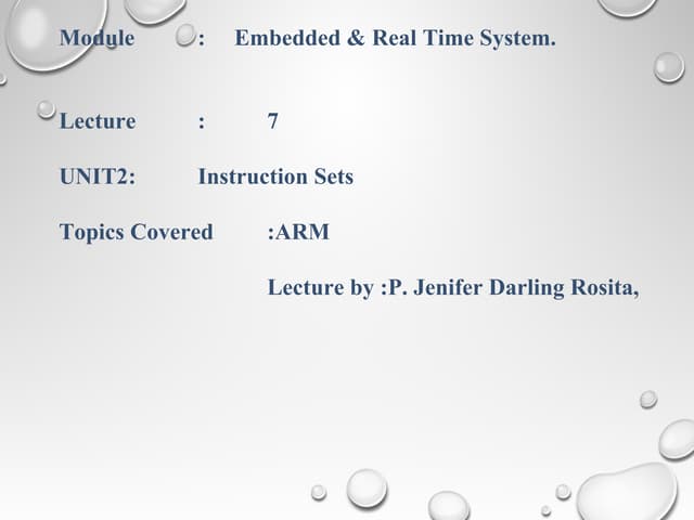 9. 9. Address Opcode Mnemonic Operands 00000000 E0804001 ADD R4,R0,R1 1. Branch instructions 2. Register Load and Store instructions 3. Data processing instructions 4. Coprocessor instructions 5. Status register access instructions