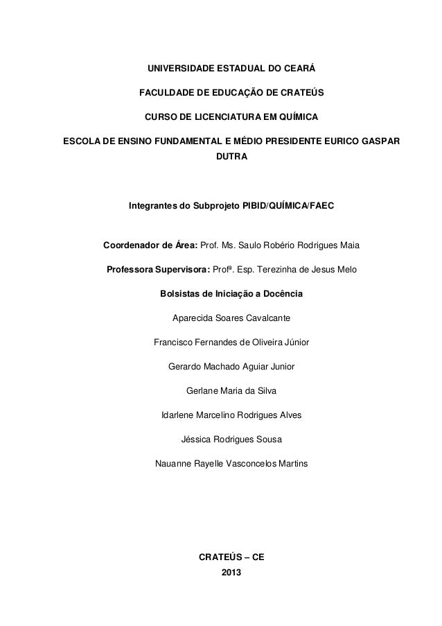 Manual de atividades práticas desenvolvido para auxiliar a compreensão dos conteúdos da disciplina de Química (ou Ciências) desenvolvidos pelos participantes do Programa Institucional de Bolsas de Iniciação à Docência (PIBID-UECE) da Escola de Ensino Fundamental e Médio Presidente Eurico Gaspar Dutra.