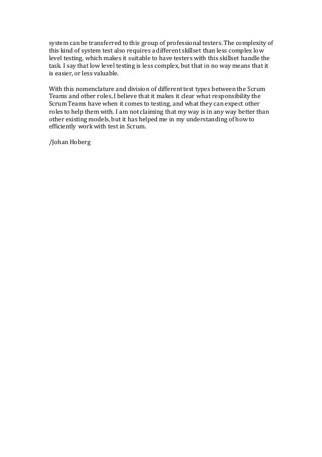 How to divide different test areas between the Scrum Team and other roles.