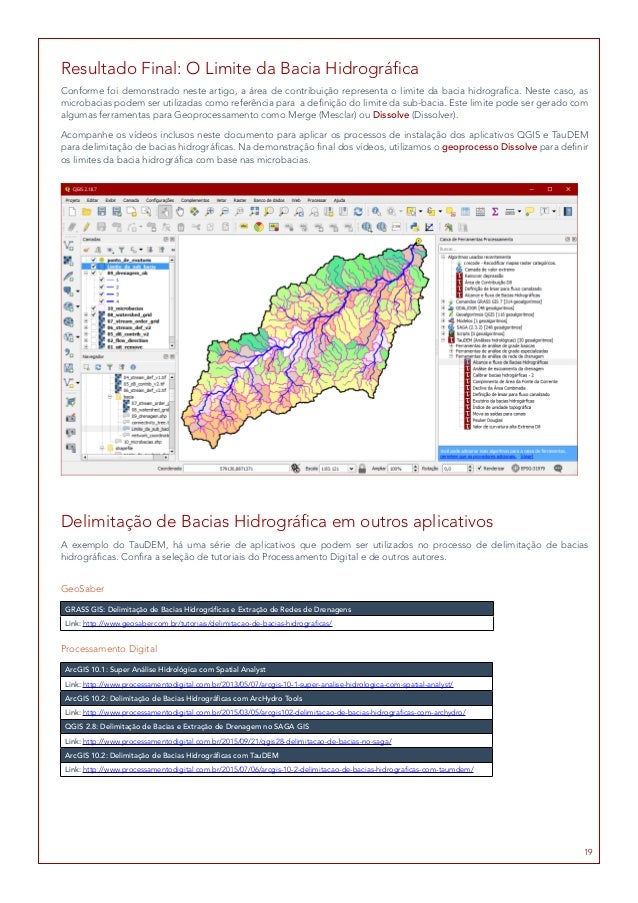 Esta é a delimitação de bacias passo a passo com texto e vídeos. O equipamento utilizado foi um computador Core i7 com 8 GB de RAM com o Sistema Operacional Microsoft Windows 10 Professional 64 Bits.