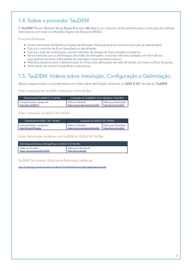 QGIS e TauDEM são aplicativos Open Source, ou seja, não há custo para aquisição de licenças. Você pode instalar esses aplicativos no seu computador e seguir o procedimento do manual.