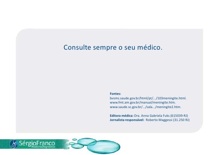 18. 18. Outras formas de prevenção incluem evitar aglomerações e manter os ambientes ventilados.</li></li></ul><li>Consulte sempre o seu médico.<br />Fontes: <br />bvsms.saude.gov.br/html/pt/.../103meningite.html.<br />www.fmt.am.gov.br/manual/meningite.htm.<br />www.saude.sc.gov.br/.../sala.../meningite2.htm.<br />  <br />Editora médica: Dra. Anna Gabriela Fuks (615039-RJ)<br />Jornalista responsável: Roberto Maggessi (31.250 RJ)<br />
