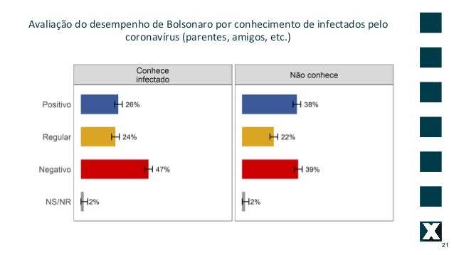 21. 21. 21 Avalia��o do desempenho de Bolsonaro por conhecimento de infectados pelo coronav�rus (parentes, amigos, etc.)