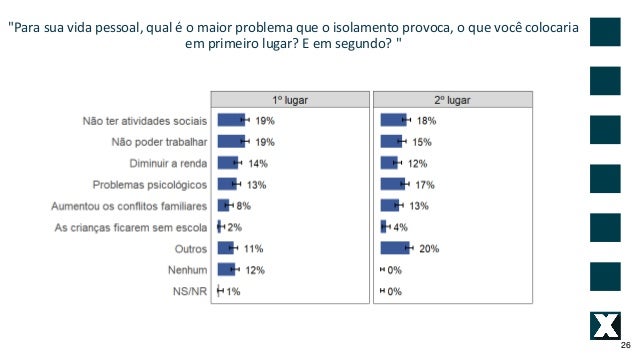 26. 26. "Para sua vida pessoal, qual � o maior problema que o isolamento provoca, o que voc� colocaria em primeiro lugar? E em segundo? " 26