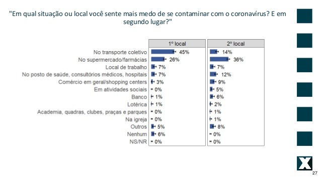 27. 27. "Em qual situa��o ou local voc� sente mais medo de se contaminar com o coronav�rus? E em segundo lugar?" 27