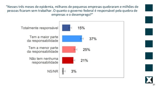 31. 31. "Nesses tr�s meses de epidemia, milhares de pequenas empresas quebraram e milh�es de pessoas ficaram sem trabalhar. O quanto o governo federal � respons�vel pela quebra de empresas e o desemprego?" 31