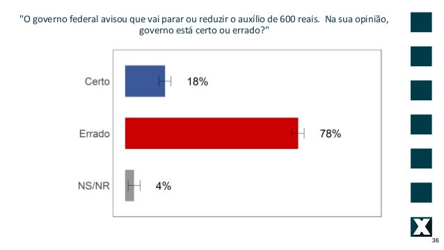 36. 36. "O governo federal avisou que vai parar ou reduzir o aux�lio de 600 reais. Na sua opini�o, governo est� certo ou errado?" 36