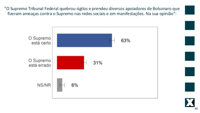 40. 40. "O Supremo Tribunal Federal quebrou sigilos e prendeu diversos apoiadores de Bolsonaro que fizeram amea�as contra o Supremo nas redes sociais e em manifesta��es. Na sua opini�o": 40