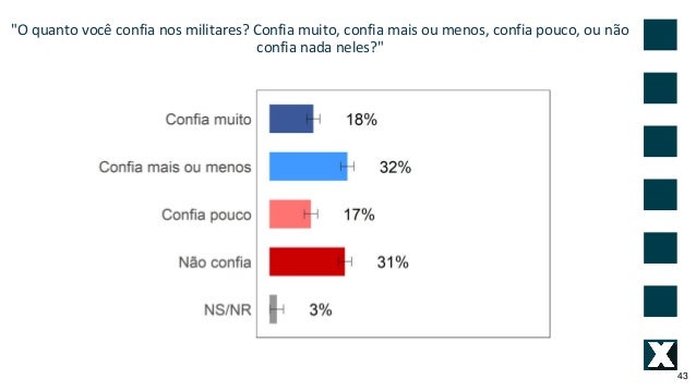 43. 43. "O quanto voc� confia nos militares? Confia muito, confia mais ou menos, confia pouco, ou n�o confia nada neles?" 43