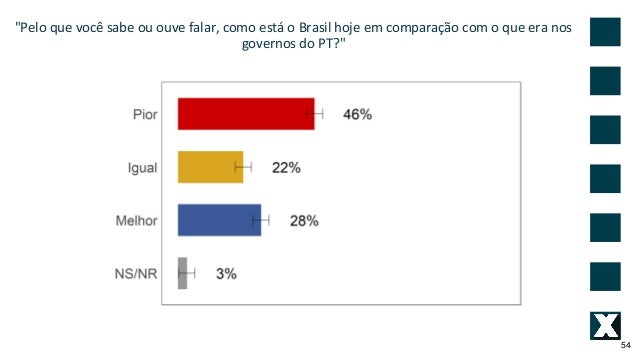 54. 54. "Pelo que voc� sabe ou ouve falar, como est� o Brasil hoje em compara��o com o que era nos governos do PT?" 54