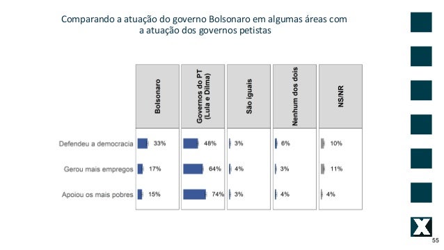 55. 55. Comparando a atua��o do governo Bolsonaro em algumas �reas com a atua��o dos governos petistas 55