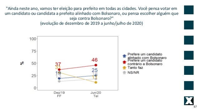 57. 57. "Ainda neste ano, vamos ter elei��o para prefeito em todas as cidades. Voc� pensa votar em um candidato ou candidata a prefeito alinhado com Bolsonaro, ou pensa escolher algu�m que seja contra Bolsonaro?" (evolu��o de dezembro de 2019 a junho/julho de 2020) 57