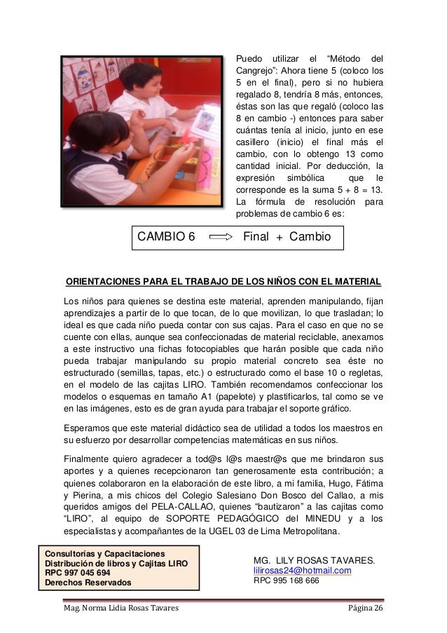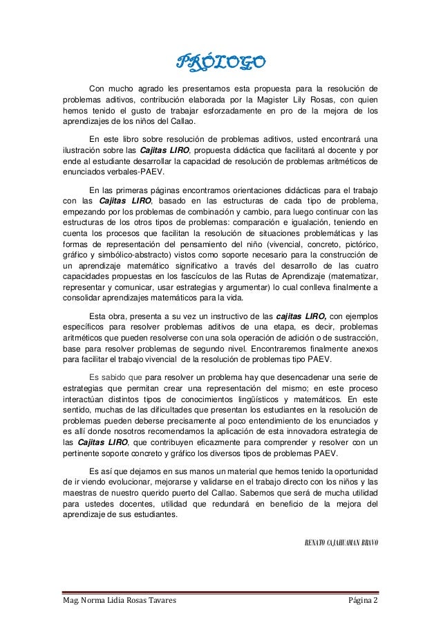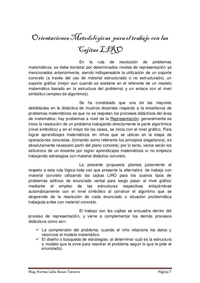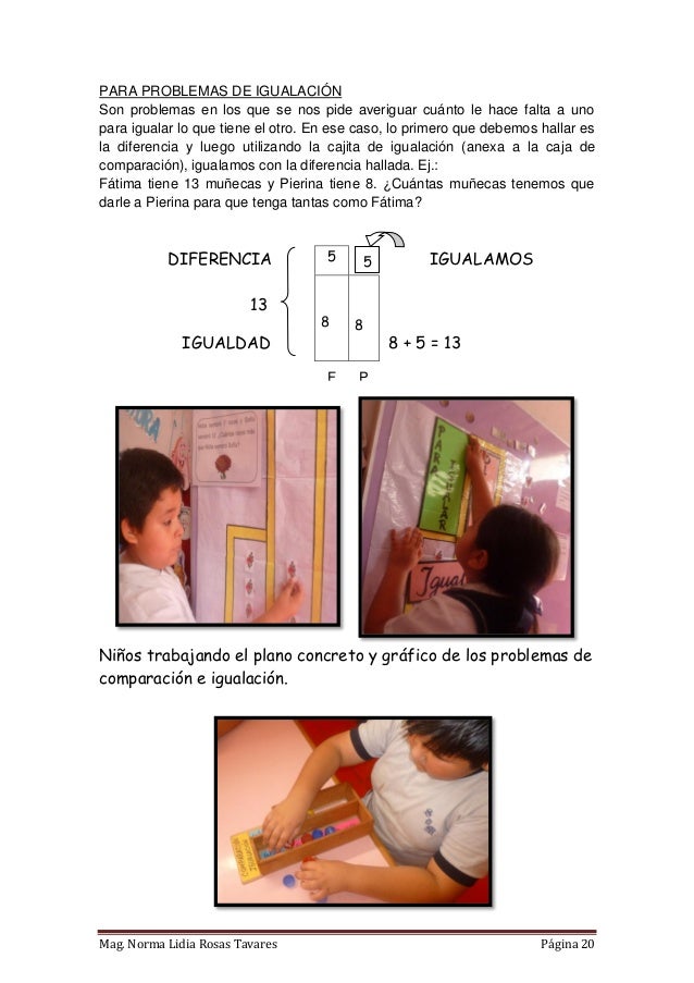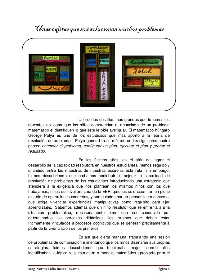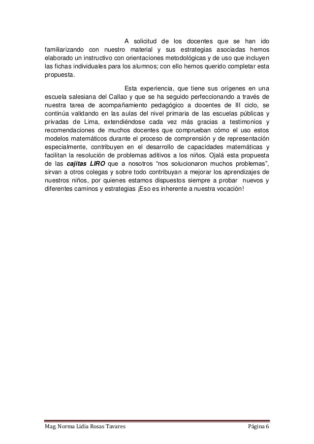 Propuesta de material didáctico estructurado que consta de tres cajas diseñadas a partir de modelos matemáticos para cada tipo de PAEV aditivo (combinación, cambio, comparación e igualación). Elaborado en Lima - Perú, tiene como finalidad contribuir al desarrollo de la capacidad de resolución de problemas en los niños del nivel primaria. El libro incluye un instructivo donde se proponen algunas de las varias estrategias que se pueden trabajar en las cajitas. Próximamente estaré compartiendo también las fichas para fotocopiar y materiales autoinstructivos.