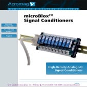 The microBlox™ line of signal conditioners, from Acromag, provides a broad range of signal conditioning functionality in a compact and rugged industrial package. The microBlox™ line of signal conditioners provides a wide array of useful features, broad range of I/O signal compatibility, and a very compact high density footprint. The input modules offer screwless mounting in a choice of backplanes accommodating up to 16 channels. Functions included transmitter, alarm, and signal conditioner.