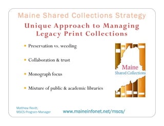 Maine Shared Collections Strategy