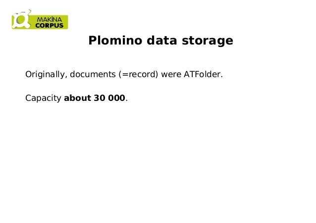 18. 18. Plomino data storage Originally, documents (=record) were ATFolder. Capacity about 30 000.