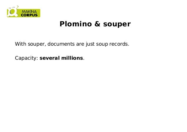20. 20. Plomino & souper With souper, documents are just soup records. Capacity: several millions.
