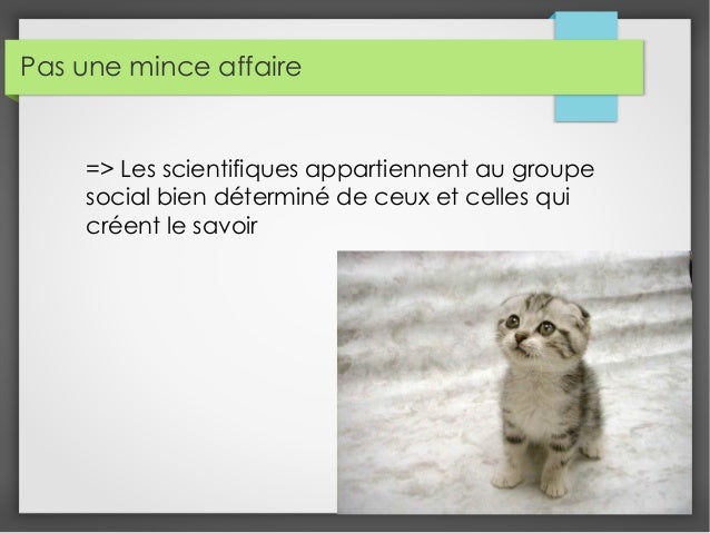 8. 8. Pas une mince affaire => Les scientifiques appartiennent au groupe social bien déterminé de ceux et celles qui créent le savoir