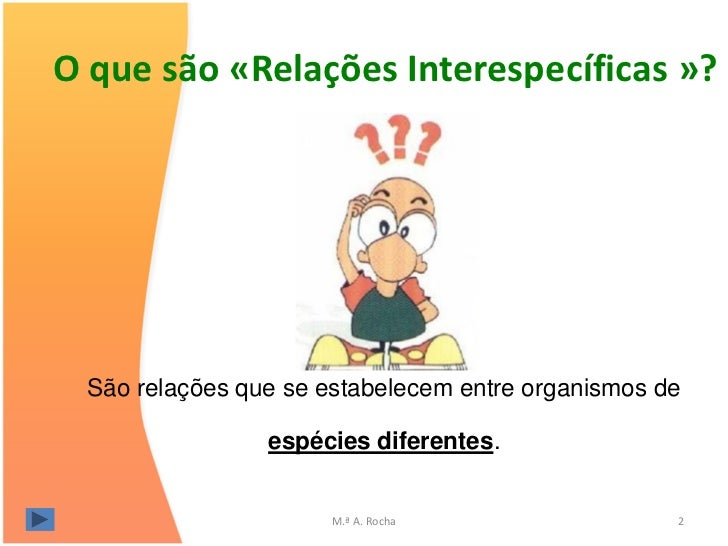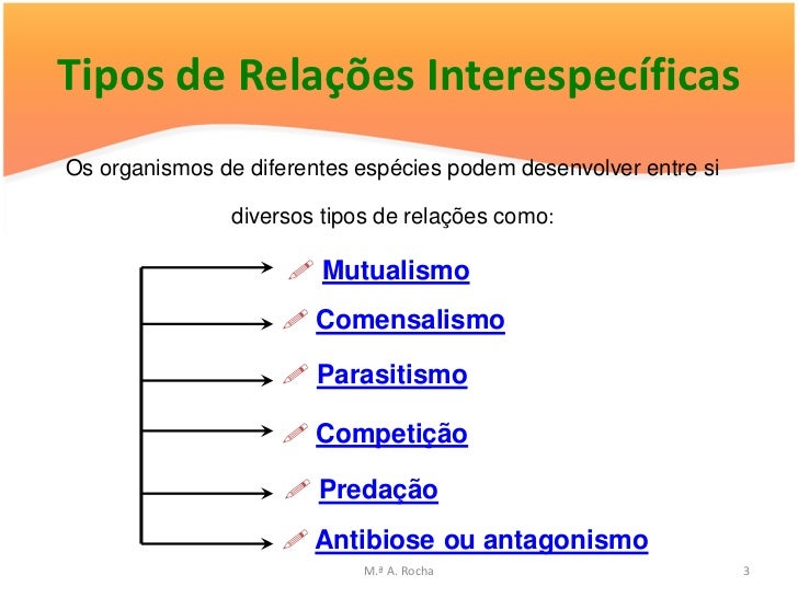 2. 2. O que são «Relações Interespecíficas »? São relações que se estabelecem entre organismos de espécies diferentes. M.ª A. Rocha 2
