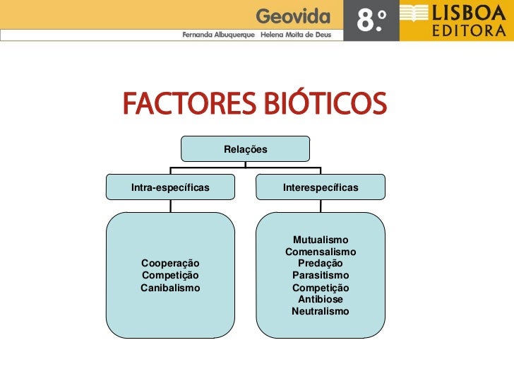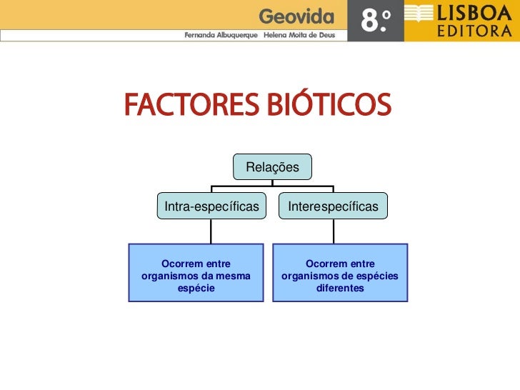 FACTORES BIÓTICOS                   Relações    Intra-específicas    Interespecíficas     Ocorrem entre          Ocorrem e...
