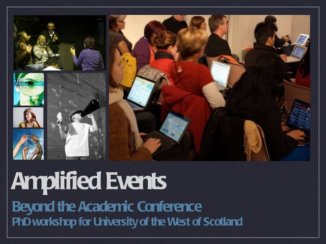 <ul><li>Online events and amplification of events is only going to get bigger </li></ul><ul><li>Can share your outputs with a much wider group of people </li></ul><ul><li>Can reuse outputs </li></ul><ul><li>Better impact, better value </li></ul><ul><li>Good to get experience and knowledge of technologies </li></ul><ul><li>Puts UKOLN in a good position if we are seen to be at the front when it comes to understanding these technologies </li></ul>Why Amplify?