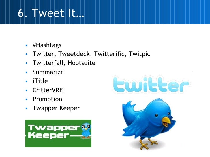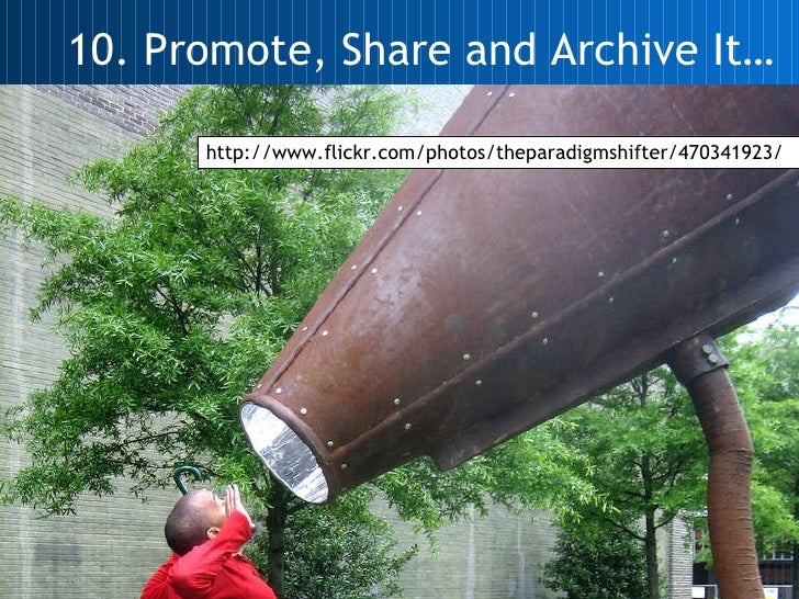 10. Promote, Share and Archive It… http://www.flickr.com/photos/theparadigmshifter/470341923/