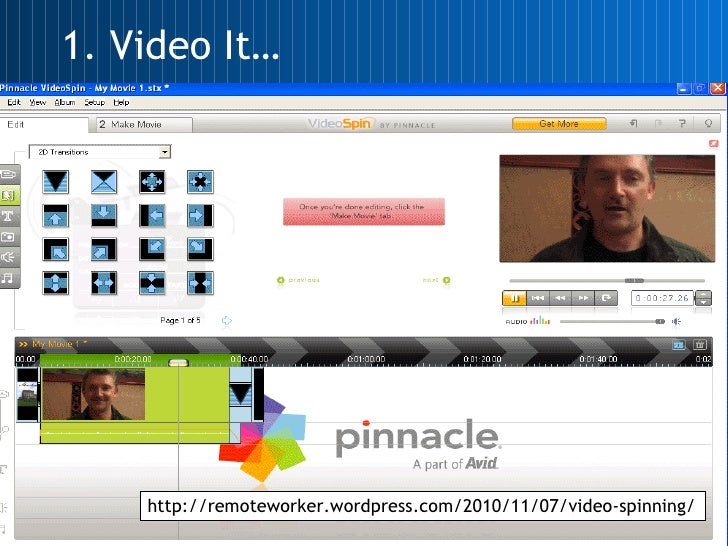 1. Video It… http://remoteworker.wordpress.com/2010/11/07/video-spinning/
