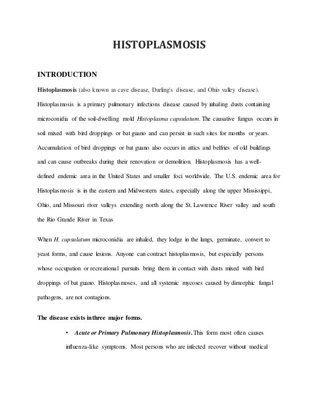 A TERM PAPER ON A TYPICAL MYCOSIS (HISTOPLASMOSIS) which include Introduction