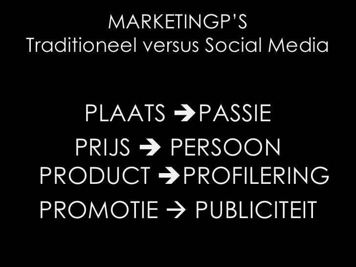 60. 60. MARKETINGP’S Traditioneel versus Social Media<br />PLAATS PASSIE<br />PRIJS  PERSOONPRODUCT PROFILERING<br />PROMOTIE  PUBLICITEIT<br />