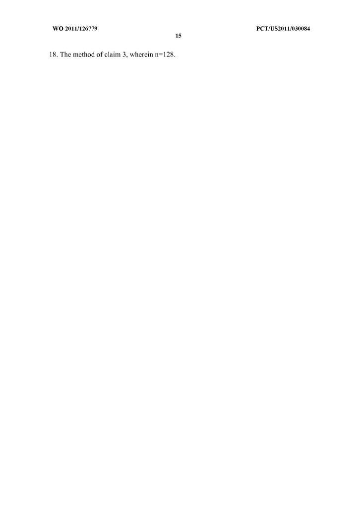 16. 16. WO 2011/126779 peT/US20111030084 15 18. The method of claim 3, wherein n=128.