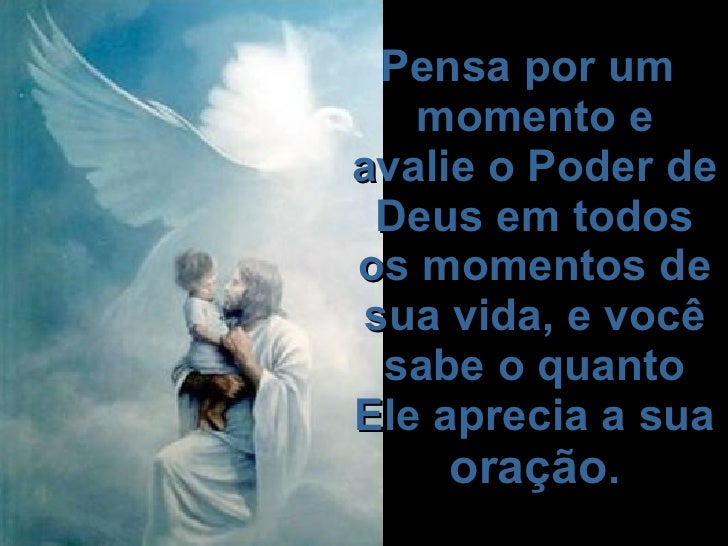 17. 17. <ul><li>  Pensa por um momento e avalie o Poder de Deus em todos os momentos de sua vida, e você sabe o quanto Ele aprecia a sua oração . </li></ul><ul><li>  </li></ul>