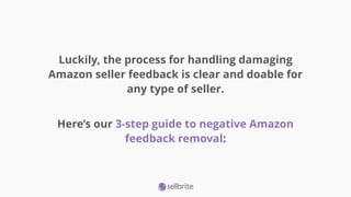 9. 9. Luckily, the process for handling damaging Amazon seller feedback is clear and doable for any type of seller. Here’s our 3-step guide to negative Amazon feedback removal: