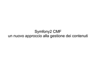 2. Abstract La modellazione e gestione dei contenuti costituisce un dominio complesso. Soluzioni standard come Drupal, Joomla o Wordpress si adattano con difficoltà su un dominio specifico; d'altro canto soluzioni fatte in casa costano in termini di tempi di sviluppo e riusabilità. Non esiste allora "one cms to rule them all"? Il progetto Symfony CMF, che coinvolge diverse aziende in ambito europeo, ha come obiettivo la creazione di strumenti che facilitino gli sviluppatori nella realizzazione di soluzioni cms custom, ponendo l'accento sulla flessibilità, la qualità e la riusabilità dei singoli componenti