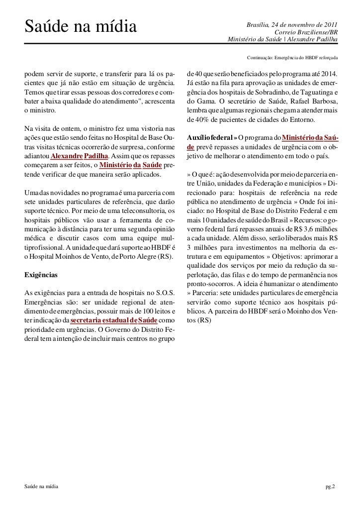 ao pronto-socorro do Hospital de Base. Ainda este