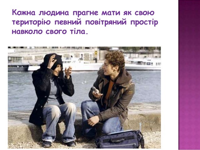 7. 7. Кожна людина прагне мати як свою територію певний повітряний простір навколо свого тіла.
