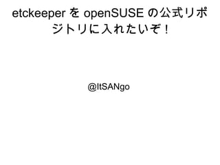 The record that I was active to put etckeeper in openSUSE. I lectured in http://lilo.doorkeeper.jp/events/13874 .