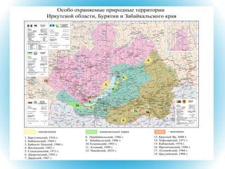 Документ описывает типичные и уникальные природные явления охраняемых природных территорий (оопт) Байкала, подчеркивая их ландшафтное и биологическое разнообразие. Упоминаются различные экосистемы, редкие виды животных и растений, а также важные экосистемные услуги. Особое внимание уделяется ценности дикой природы для будущего человечества.