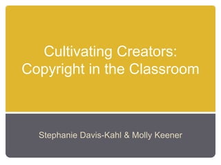 This webcast was presented by Stephanie Davis-Kahl, Scholarly Communications Librarian/Associate Professor, Illinois Wesleyan University, and Molly Keener, Scholarly Communication Librarian, Wake Forest University, for the Association of College & Research Libraries' e-Learning series on August 5, 2014. Information literacy and scholarly communication librarians are working together to create avenues for increased collaboration in the classroom. The Framework for Information Literacy and the Intersections of Scholarly Communication and Information Literacy white paper, plus continuing task force work within ACRL, demonstrates progress towards aligning scholarly communication education within undergraduate and graduate student information literacy outreach. This webcast will focus on how librarians can integrate copyright into the classroom with undergraduate and graduate students to raise awareness of not only ethically using others’ work, but also how to consider their rights and responsibilities as creators and copyright holders of their own work. Learning Outcomes: - Share strategies for discussing copyright with students in order to build instructional literacy for librarians. - Contextualize copyright and Creative Commons licenses within information literacy instruction in order to increase professional knowledge about scholarly communication. - Raise awareness of different options for sharing scholarship and creative activity among librarians in order to close the loop in information literacy instruction.