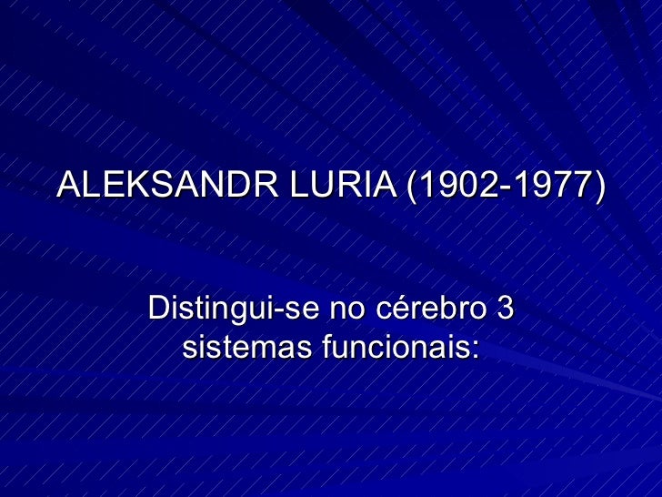 12. 12. ALEKSANDR LURIA (1902-1977) Distingui-se no cérebro 3 sistemas funcionais: