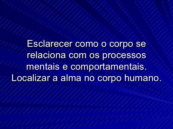 5. 5. Esclarecer como o corpo se relaciona com os processos mentais e comportamentais. Localizar a alma no corpo humano.