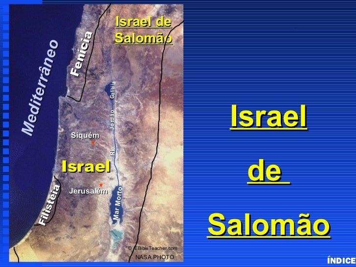 21. 21. Israel de Solomon’s Israel Salomão íc ia â neo Fe n i te rr Galiléia IsraelMe d Jordão Siquém Rio Israel de ia Jerusalém to Mar Mor s té Salomão Fil i © EBibleTeacher.com NASA PHOTO ÍNDICE
